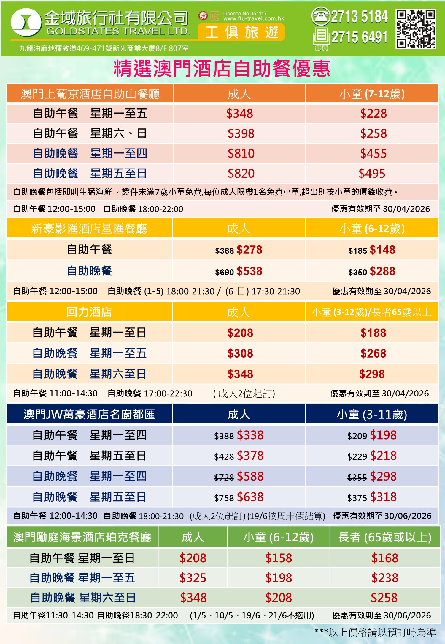 精選澳門酒店自助餐優惠