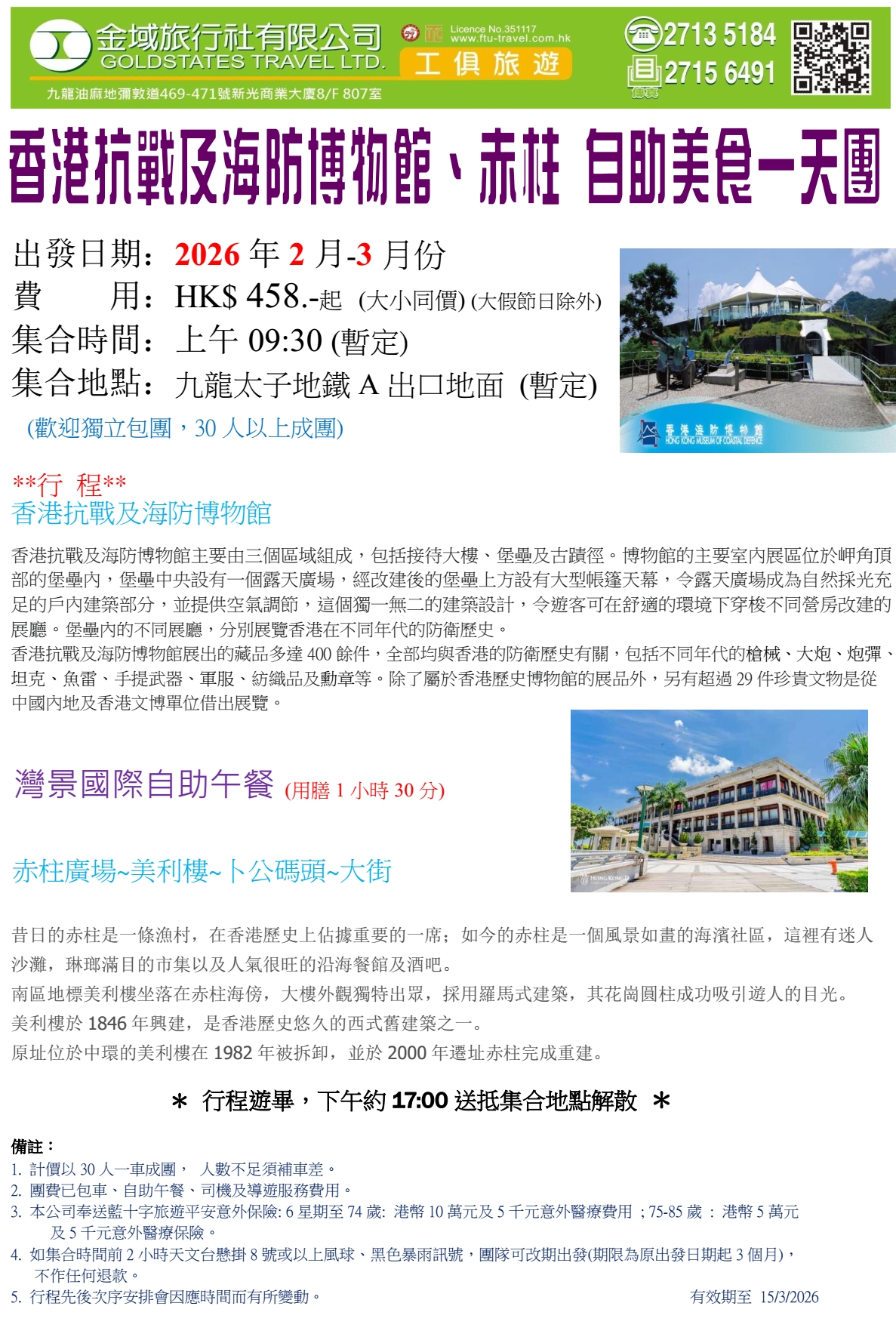新春行大運 香港抗戰及海防博物館 赤柱 自助美食一天